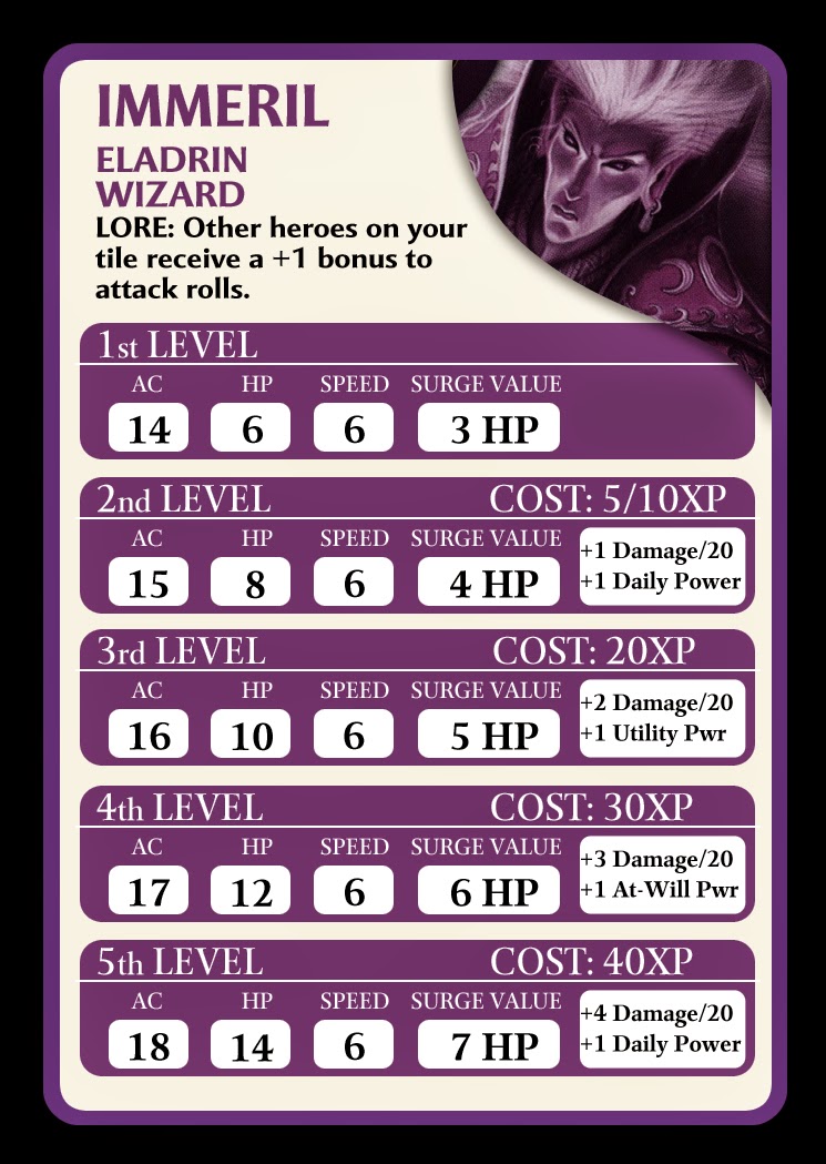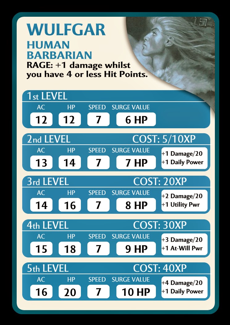 Don’t know why it’s taken me so long to get round to this but here they are – the Dungeons and Dragons Adventure System Coloured Hero Levelling Cards:
