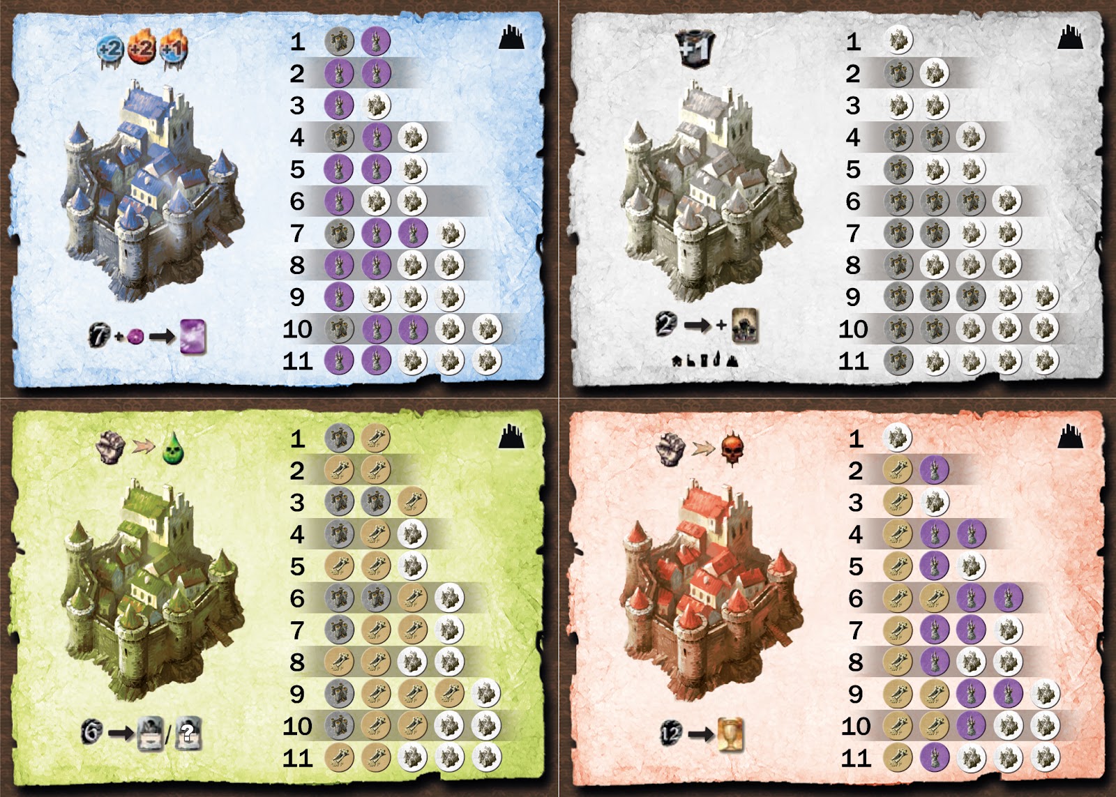 Based on Paul Grogan’s original designs the following cards have all the city information on them that you should need for reference: