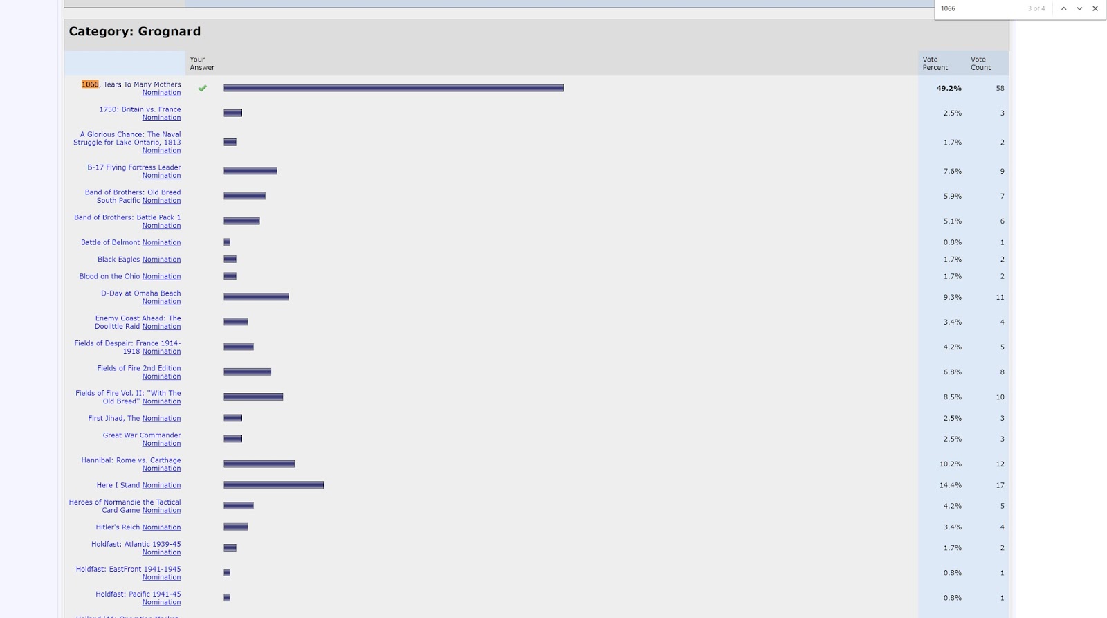 AAAAANNNNDDD, speaking of those Tears… “1066, Tears to Many Mothers” – Kickstarting this year once you’ve got your copies of GoK – has also been nominated for the categories of Grognard, Crowd Funded and Political, so please please please support us by clicking on that too. Let’s be honest, 1066 funding = more GoK down the line…