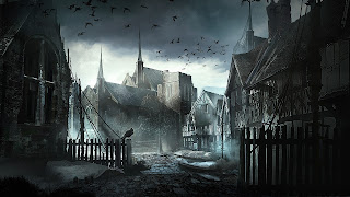 Under the perennial moonlight, waves smash against the cliffs far below, whilst on every other side the encroaching forest seems to strangle the town itself.