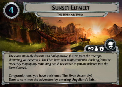 Something that has been missing from the Lord of the Rings card game is an end to the story once you’ve completed the scenario. What happens once you’ve escaped from Dol Guldur? Did King Thranduil’s message carry? But I can understand why they didn’t include cards for this in the game, especially since there was such an outcry already about the rip-off card distribution in one core set.
