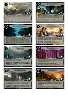In any case, in order to complete the short stories I designed for my own scenarios, I developed the following Prologue cards to be read before starting the adventure. If you manage to complete all 3 stages you simply flip the card to read the Epilogue on the other side. Whilst this doesn’t affect gameplay (although it does finally instruct you in which order to play them!) I think it rounds out the experience nicely from a thematic point of view.